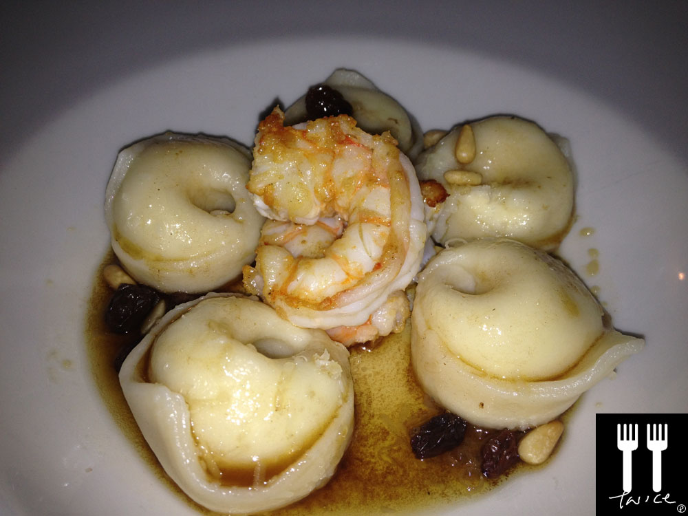 [LEFT] ROAST PUMPKIN & RAISIN TORTELLINI, KERVELLA GOATS CHEESE, WALNUTS & SAGE BURRE NOISETTE (by Me) – it was great fun making these tortellinis in bulk.