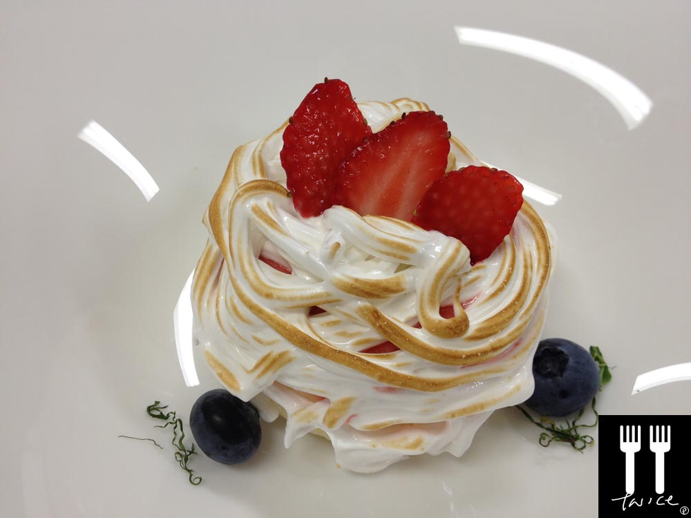 [LEFT] DESSERT: BOMBE ALASKA with SEASONAL BERRY SOUP