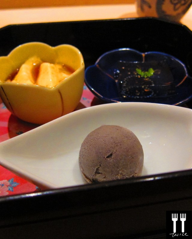 DESSERTS TRIO (From left, anti clockwise – Egg pudding with caramel sauce, Sesame ice cream & Umeshu jelly) – The perfect ending to a wonderful meal. My favorite dessert was the umeshu jelly – i can taste the sweet Japanese liqueur in every bite.