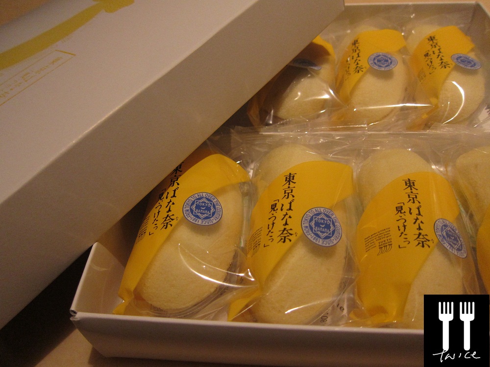 K:  This is a very popular snack typically sold only in Tokyo due to its short shelf life.  The sponge cake is very soft and the banana puree tasted exactly like fresh bananas!  A good parting gift from Japan and can be easily found in Narita airport.