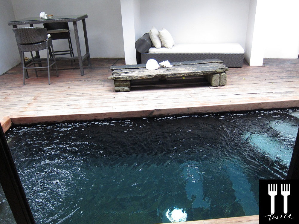 The butlers work like magical silent workers in movies. They set up the cabana/tanning chairs quickly when you are in the pool. Fresh towels/ice cold water appeared when you come up for tanning. A butler appears in front of you with poolside refreshment when you are taking a rest from swimming! The refreshment changes every time we swim (Read: mixed fruits sorbet, mango popsicle, coconut ice cream). When you are done with the icy treat, the butler will appear miraculously again to pick up the bowl so you can resume swimming. This is HEAVEN!