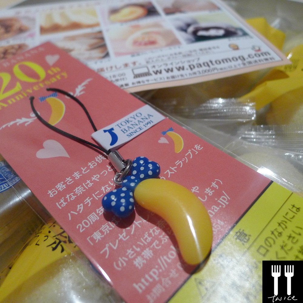 I had a pleasant surprise when I opened the box of Tokyo banana. There was a Tokyo banana keychain inside as a 20th anniversary giveaway. Look at the cute polka dot bow! Read Tokyo banana review here
