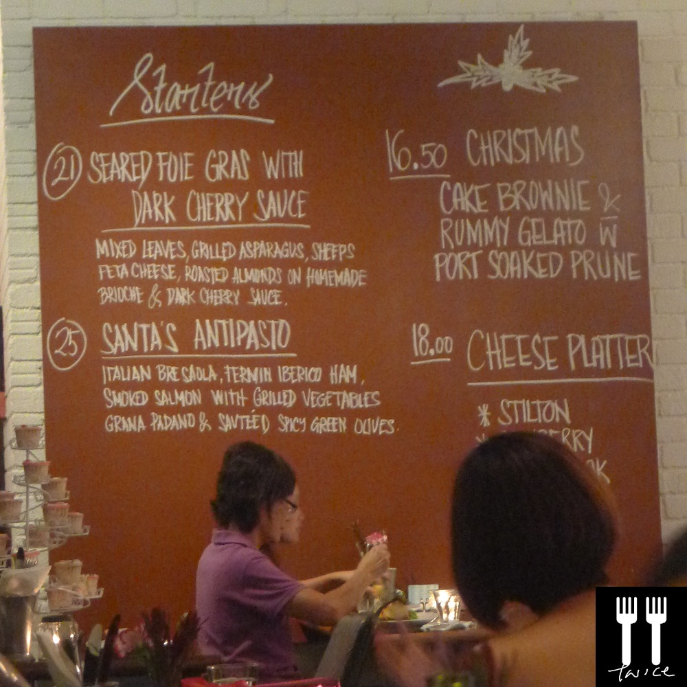 [RIGHT] Seasonal offerings were introduced on the big chalkboards.