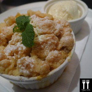 [LEFT] MANGO BANANA CRUMBLE with vanilla ice cream – A sweet ending to a fantastic meal but nothing memorable. I prefer the chocolate fudge cake here.
