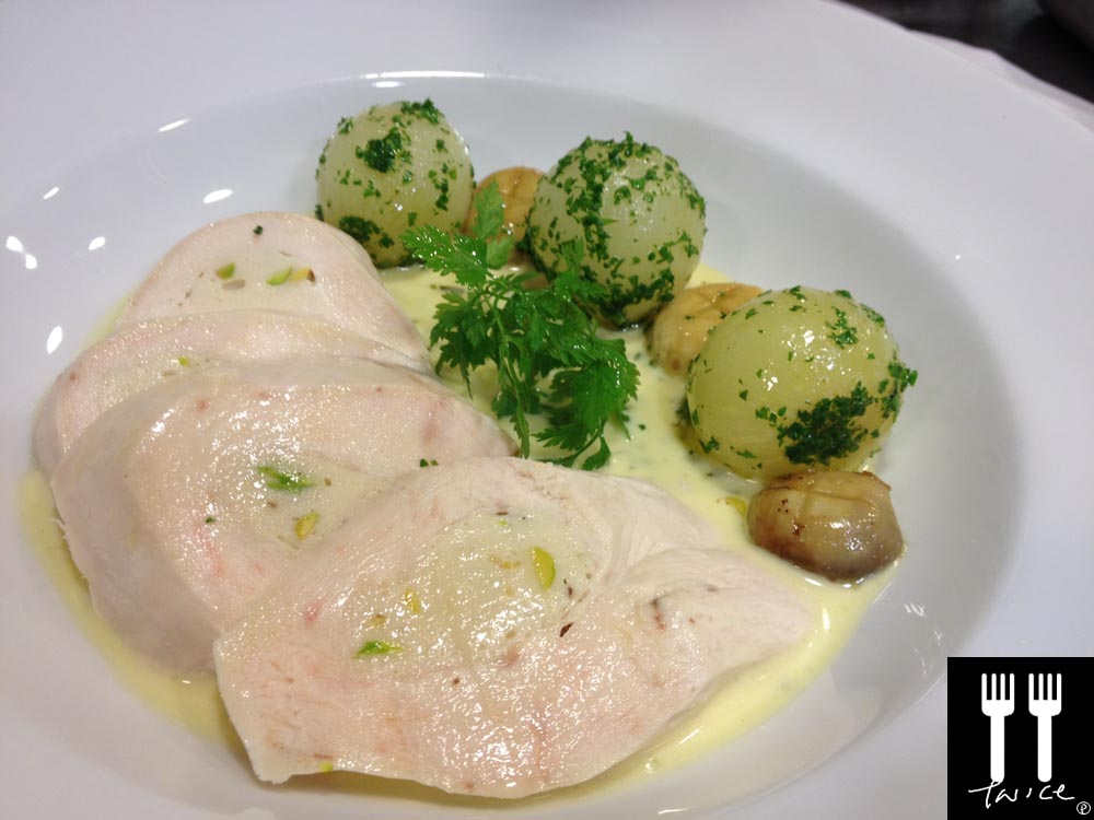 SHALLOW POACHED STUFF CHICKEN BREAST – Picture from the demo. I am too displeased with mine I do not want to be reminded of it here 😛