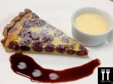 CLAFOUTIS SERVED WITH SAUCE ANGLAISE (by me) – Again…not perfect as the consistency of my sauce could have been thicker.
