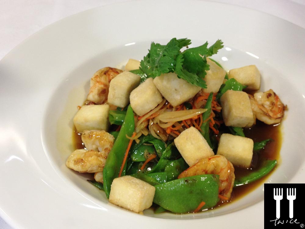 [RIGHT] STIR FRIED PRAWNS with Vegetables and Tofu (by Chef Darren) – This dish is simply too asian! I pointed this out to the chef who highlighted the fact that Asian food is becoming so popular in the Europe including England (and France?). The funny thing is: I heard quite a few asian student criticizing Chef’s demo dish – classic role reversal.