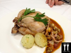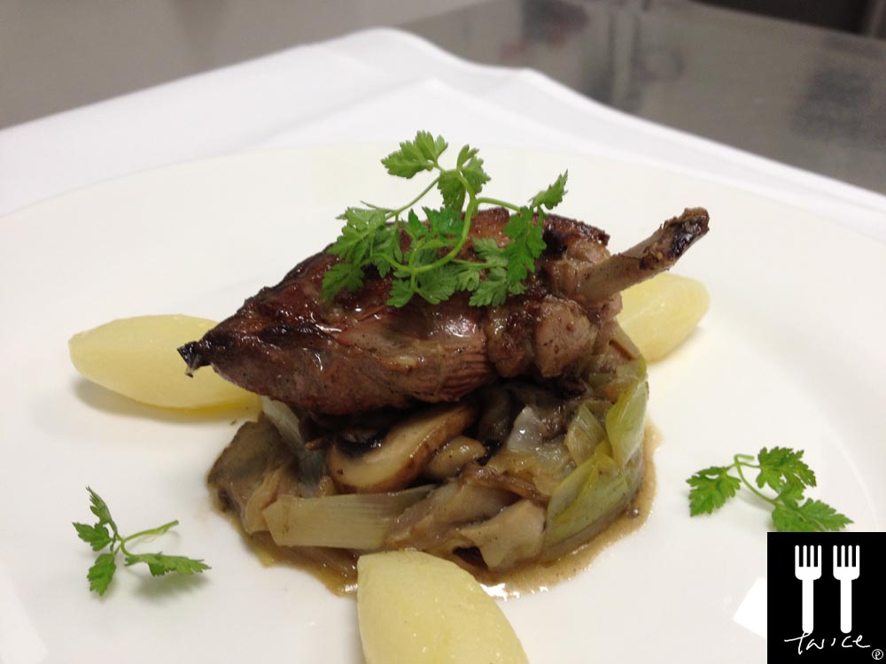 [RIGHT] BREAST OF PIGEON with leek and mushrooms (by Me) – we were suppose to prepare guinea fowl (another type of game) but since it was out of stock…we ended up with pigeons instead (yummy! reminds me of my favorite delicacy in HK).