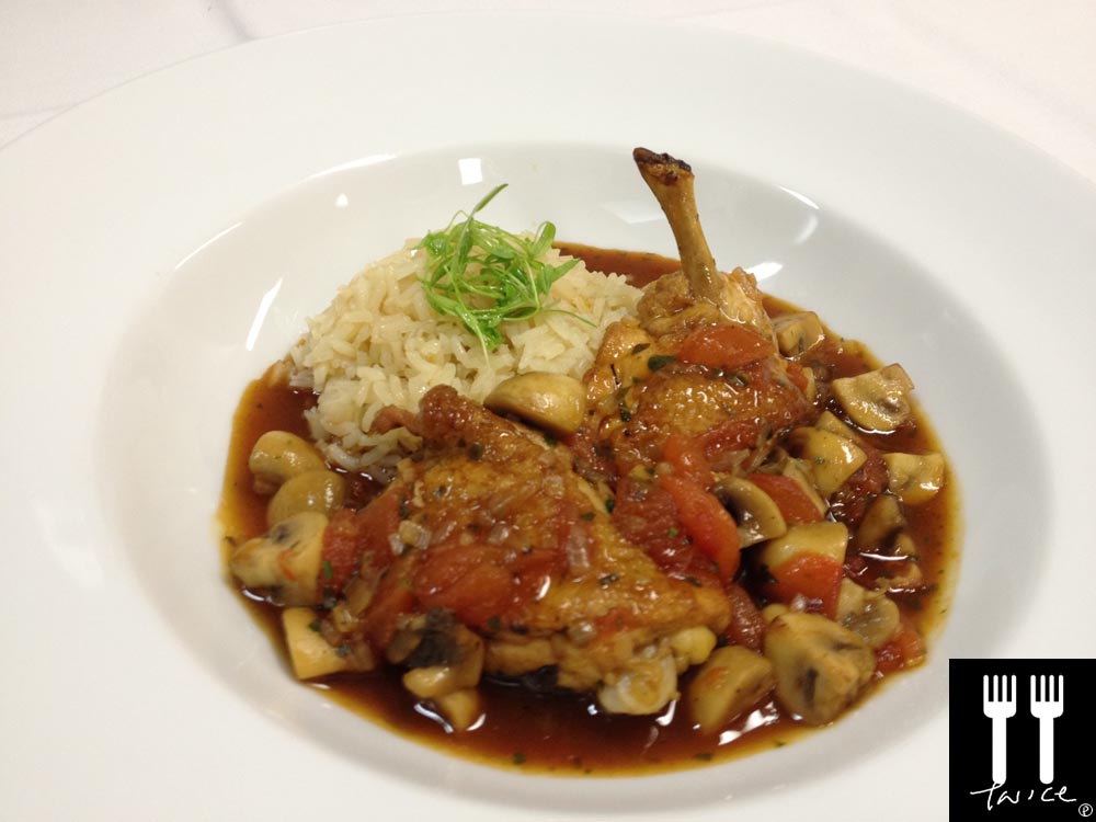 CHICKEN SAUTE CHASSEUR served with PILAFF RICE (by Me) – I have always thought that chicken dishes are easy since I have been eating and handling it my whole life (almost)…but learning how to chop chicken for saute (ie. 8 pcs) the right way is no easy feat!
