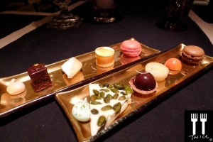 [RIGHT] SELECTION OF MIGNARDISES – Despite feeling very full, we enjoyed every single one of these finely made petit fours very much. One of them stood out particularly – the mango flavored cake (beside the pink macaroon) which ran out before we could ask for a second helping!