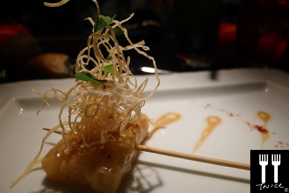 [BOTTOM LEFT] SALSIFY CONFIT AND FRIED ON A SKEWER WITH COMTE CHEESE