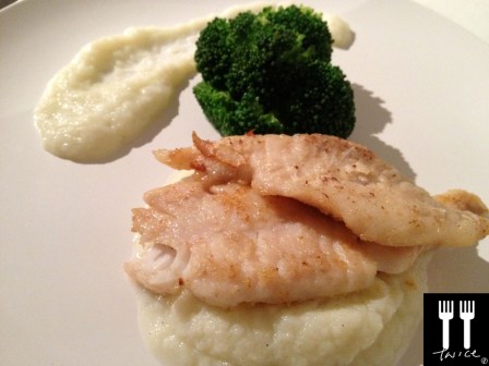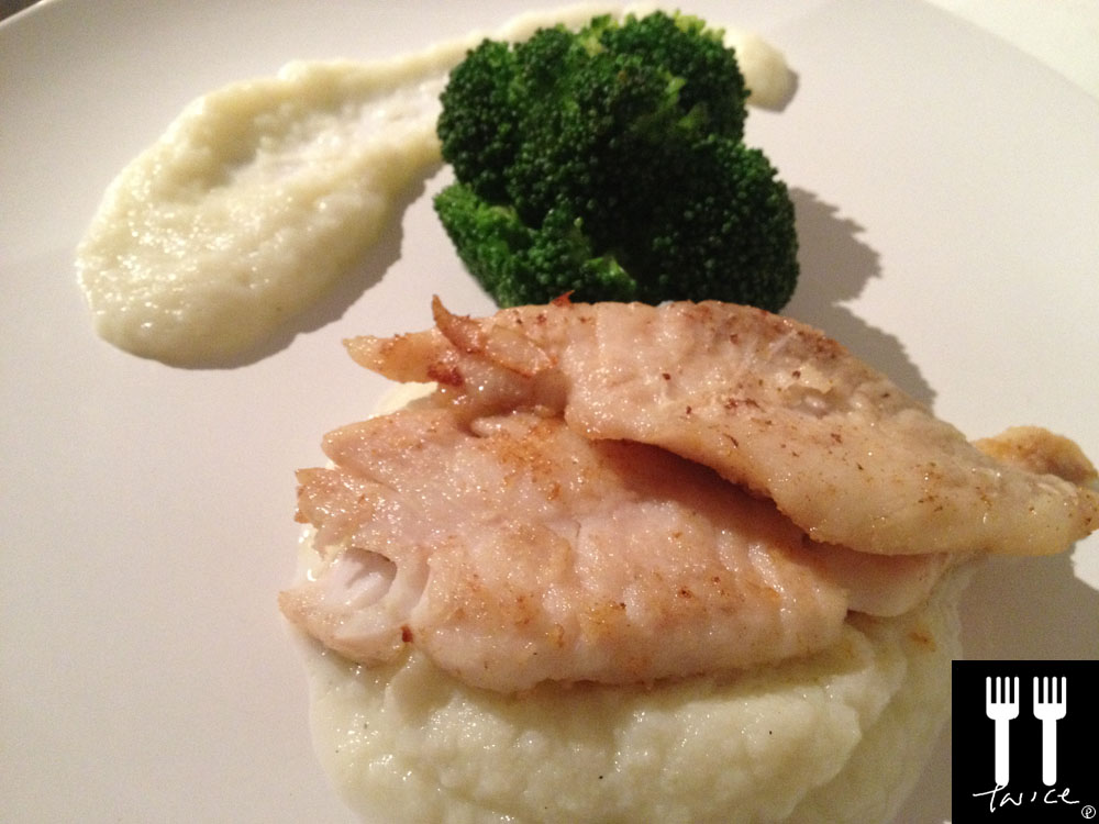 PAN-FRIED DORY with CAULIFLOWER PURÉE, BROCOLLI and BURNT BUTTER (by Me) – a very simple yet awesome dish. From the pic, it is quite obvious I left out the burnt butter sauce (Buerre Noisette) as I was in such a hurry to serve up – now, I can almost feel my chefs shaking their heads in disdain *sheepish*. As a result, this dish is somewhat incomplete without a sauce to bind everything together – fortunately, the moisture in the cauliflower purée helped!