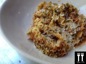 [RIGHT] Sausage Papperdelle – Slow-braised fennel sausage with parmesan & breadcrumbs.