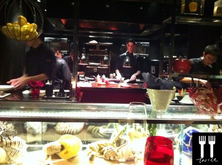 L’Atelier’s signature counter seats overseeing the well-designed open kitchen. The chefs worked in a quick & synchronized manner.