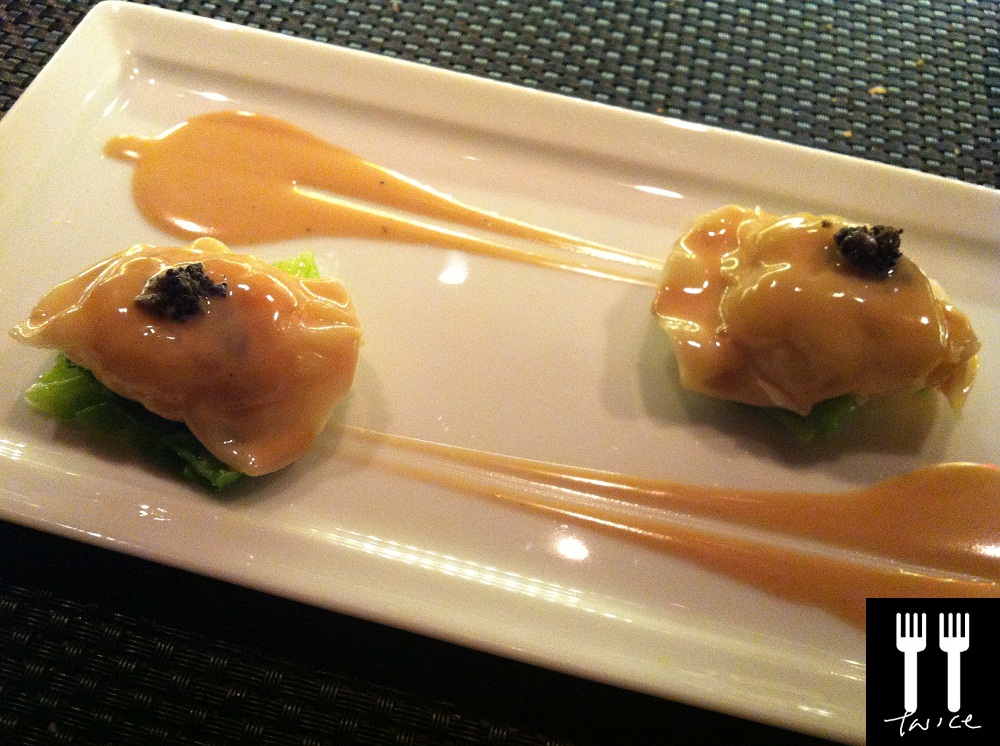 [LEFT] Langoustine Ravioli with Savoy Cabbage and Foie Gras Sauce – A dish that made me a Robuchon convert. It is good as expected but somehow not as memorable as the ones served in Singapore.