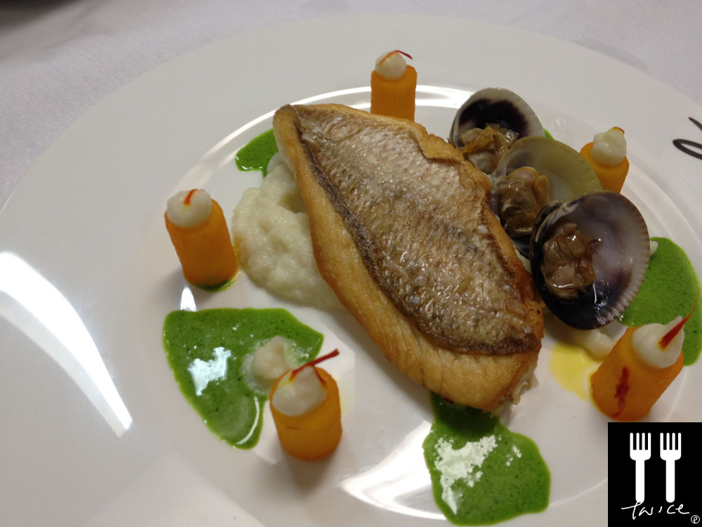 [LEFT] Pan-Fried Dory Fillets with Parsley and Fennel Coulis, Steamed Clams, Saffron Potatoes and Cauliflower Purée (by Me) – one of the more sophisticated dishes…love the colors involved in this dish.