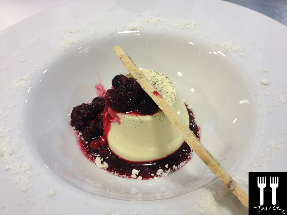 [RIGHT] Vanilla Panna Cotta with Berry Compote and Pistachio Biscotti (by Chef Josef) – This is the dessert chosen for our Practical Exam….an easy one I would say!