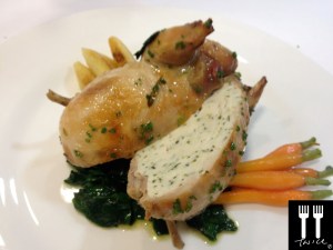 [RIGHT] Poussin with Herb Mousseline and Wilted Spinach (by Chef Ross)
