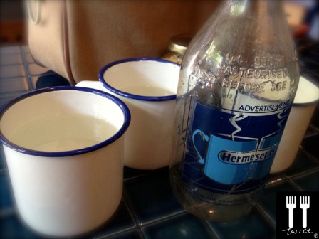 ENAMEL Drinkware – Hey! Looks like Kitchen by Mike is not the only one going retro. And notice the table top – it’s lined with mosiac tiles, cool beans!