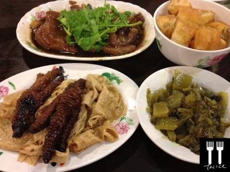FROM TOP LEFT, CLOCKWISE – Braised Trotter and Intestines, Dough Fritter, Salted Vegetables & Braised Beancurd Skin and Chicken Feet