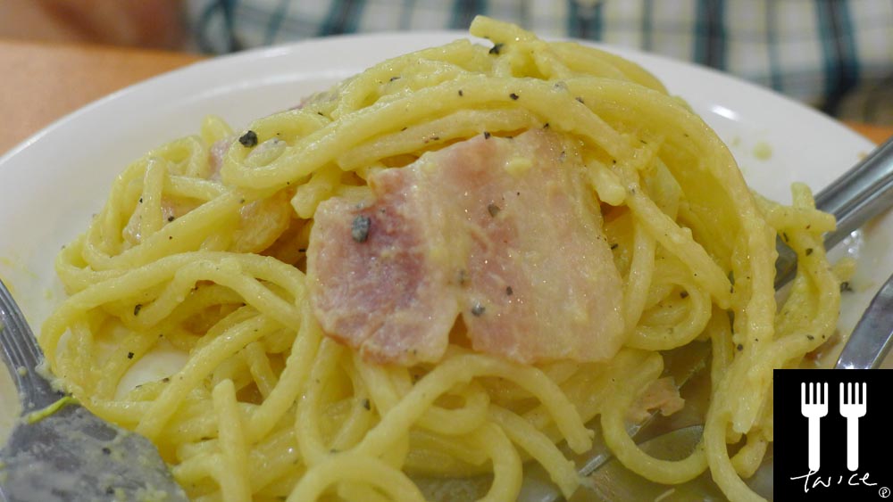 [LEFT] CARBONARA ($5.80) – flavors were right and spaghetti was pretty much al dente (maybe just slightly over). Wished there was more bacon though – but for that price…what more should we expect?