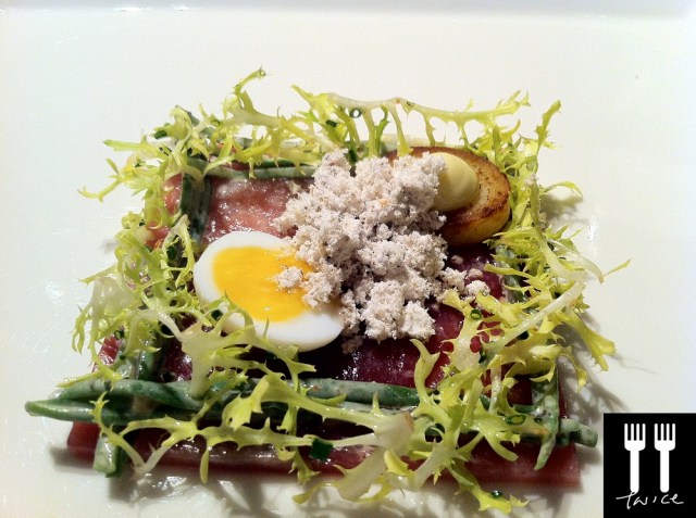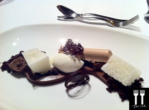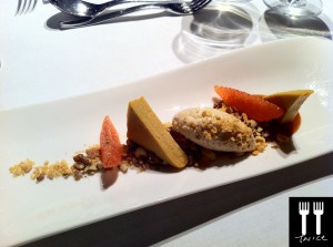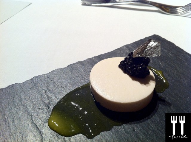 [Amuse Bouche] SMOKED EEL PARFAIT with SEVRUGA CAVIAR – I was really excited to try this as I have never tasted a smoked fish parfait! The parfait did not disappoint – it was smooth and tantalizing to the taste buds and the taste of smoked eel was light yet distinct.